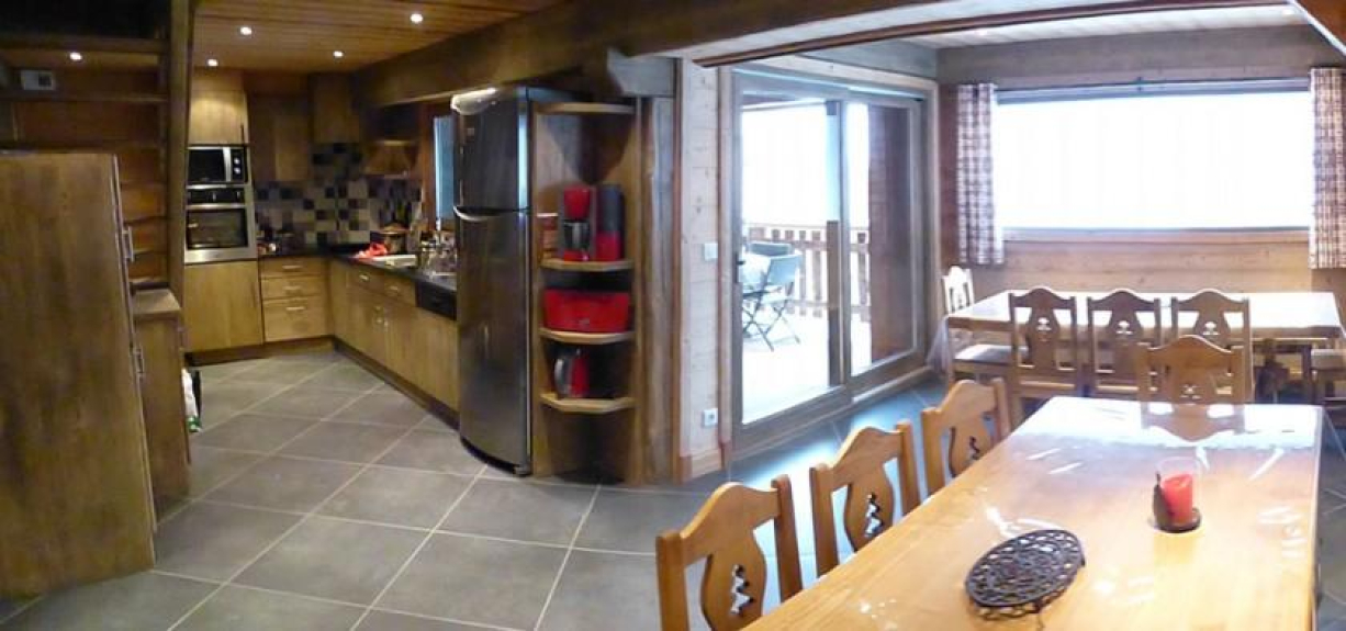 El chalet "LES SAPINS" 4* y 4 cristaux paradiski de estilo montañés y gran confort dispone de 2 terrazas cubiertas orientadas al sur y acceso a la zona de relax.