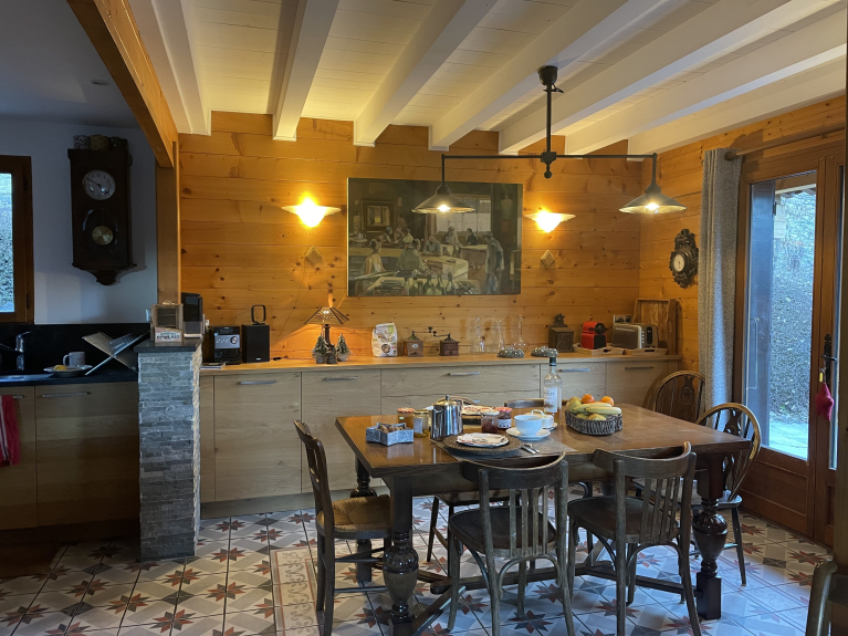 Situado a 5 minutos de las pistas y de las rutas de senderismo, a 3 km de La Clusaz y de Le Grand Bornand (transporte gratuito desde el pueblo), ubicación tranquila, vista panorámica, 2 terrazas orientadas al este, al sur y al oeste, sin obstáculos y sin vistas. 5 dormitorios, 1 cuarto de ducha, 1 cuarto de baño, 3 aseos, 1 sala de estar, 1 nueva cocina abierta al comedor.Equipamiento: ropa de cama nueva, sábanas y toallas proporcionadas, así como leña para la chimenea, barbacoa, conexión a Internet, TV de pantalla plana, reproductor de DVD, lavadora, secadora y lavavajillas, máquina de café Nespresso. Actividades de ocio: senderismo, trineo de verano, pesca, petanca, equitación, tenis, golf, rafting, piscina, spa, bicicleta de montaña, parapente, paintball, restaurantes, cine y tiendas a 5 minutos. Numerosas actividades para adultos y niños (ver programas de la estación). Acceso: aeropuerto de Ginebra (50 km), estación de Annecy (30 km).