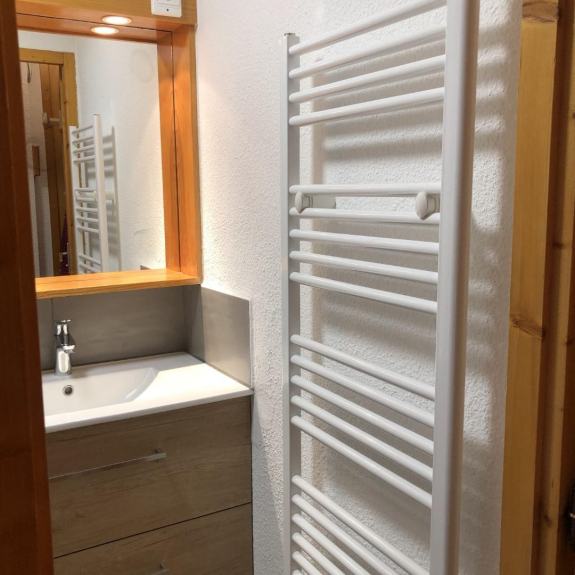 Estudio alquilado, orientado al sur con una magnífica vista del macizo de Beaufortain, situado en la planta baja, a pie de pistas, y en el centro de la estación, a 150 m de las tiendas.
