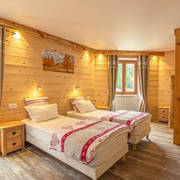 - una habitación con 1 cama individual (edredón 160X220) y 2 literas (edredones 140X200) equipadas con 2 almohadas por cama. La habitación tiene un armario y una mesa de centro.