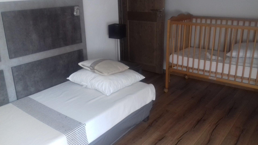 2 dormitorios con camas dobles, 1 dormitorio con 2 camas individuales y una cuna, 1 sofá cama 140 en el salón
