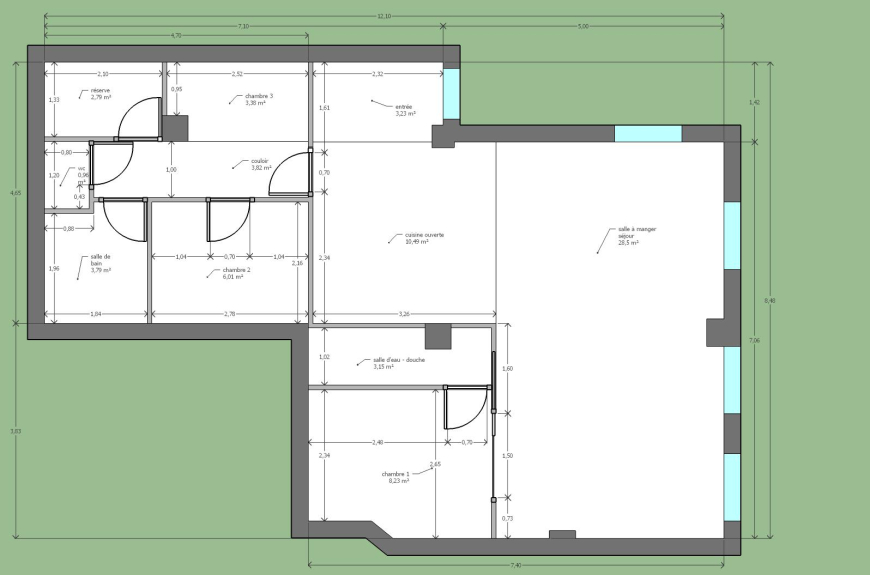 Superficie : 75 m²