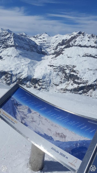 Vista sin obstáculos sobre la montaña y sobre la llegada de las pistas, (el Polo Boniface),