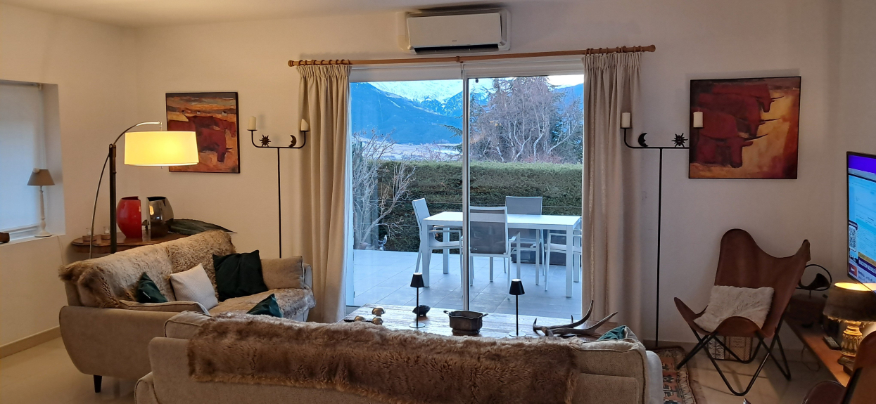 Este chalet situado en el mismo Font Romeu tiene una terraza muy grande donde se pueden tomar las comidas y un pequeño jardín. La villa está orientada al sur con una impresionante vista panorámica de los Pirineos.