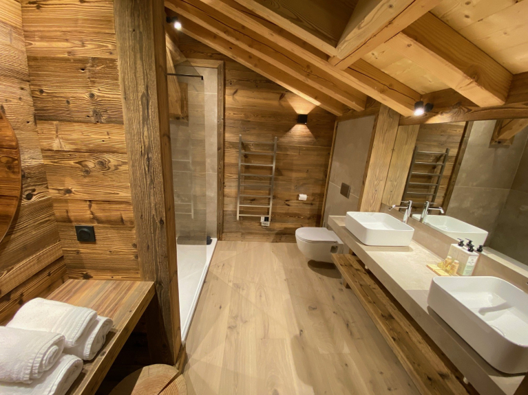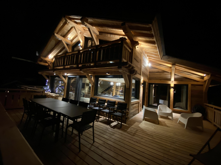 Con terrazas y balcones, el chalet le permite disfrutar de su estancia en la montaña en todas las estaciones. También le ofrece las más modernas instalaciones (cocina totalmente equipada, 4 elegantes baños, TV de pantalla plana en el salón y en los dormitorios, radio-cd Bluetooth, Wifi HD, lavadora, secador de botas de esquí...). Podemos alojar a un máximo de 10 personas con gran comodidad.