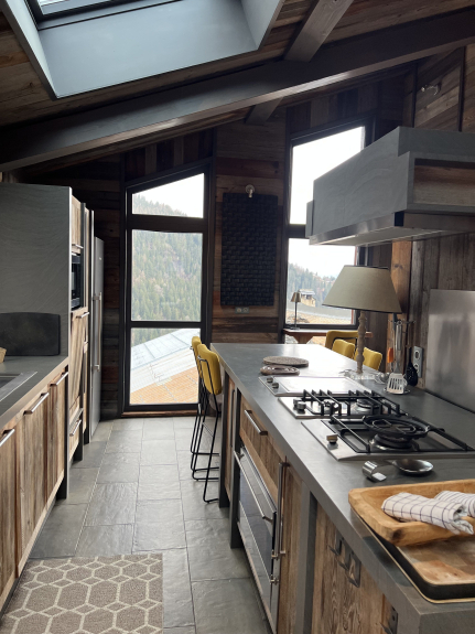 Plazas de aparcamiento privadas, cuidada decoración que combina el encanto de la madera antigua con materiales modernos en volúmenes muy contemporáneos. Servicios de alta calidad y un ambiente muy cálido garantizado. Una terraza que da al salón le permitirá disfrutar de los últimos rayos de sol frente al valle. Cada habitación está decorada de forma individual y tiene un baño con WC. 4 habitaciones están reservadas para parejas, otras 2 harán las delicias de los niños con literas. La calefacción es proporcionada por una estufa de pellets y calefacción eléctrica en un chalet que se beneficia de la última tecnología de aislamiento.