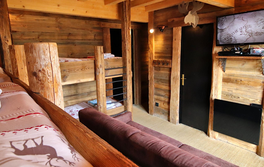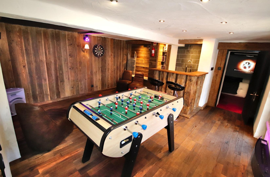 En la primera planta se encuentra el salón de 60 m² con su mesa de billar, que da a la cocina totalmente equipada y a la segunda terraza orientada al sur. Bajando la escalera de piedra, encontrará la planta de ocio: sala de juegos (futbolín, dardos), pista de baile y bar, y sala de cine. Abra la puerta acristalada que da al exterior y accederá a la gran terraza, donde el "relax" está a la orden del día. Elige entre las tumbonas para conseguir ese bronceado esencial de las "vacaciones de esquí", la piscina para desahogarte en los chorros y el jacuzzi para relajarte y contemplar el paisaje tras un largo día en las pistas.