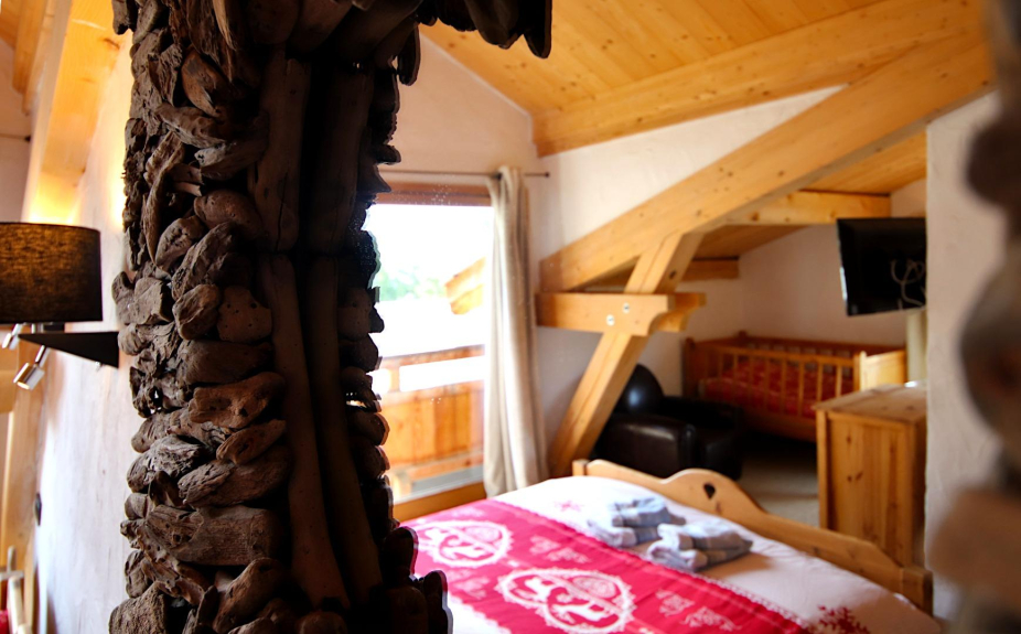 El chalet tiene 4 plantas. En las dos plantas superiores se encuentran las seis amplias habitaciones, cada una con su propio cuarto de baño. Cinco de ellas son dobles, algunas tienen camas gemelas para formar una cama doble o 2 individuales, y hay un dormitorio para 8 personas.