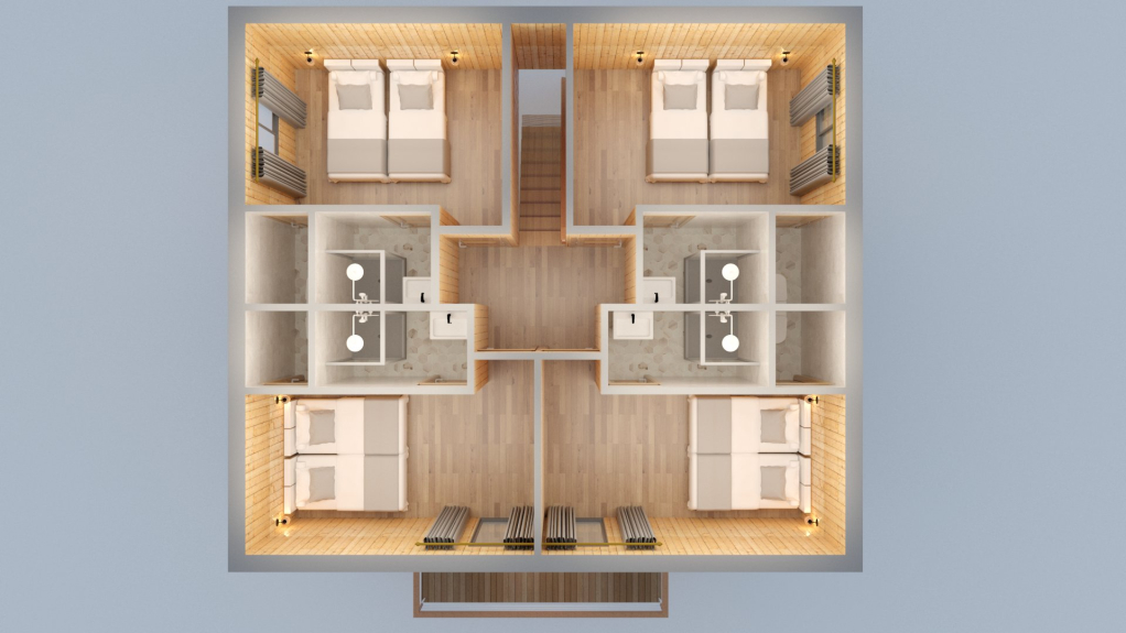 El chalet cuenta con 7 hermosas habitaciones dobles, cada una con cabina de ducha y WC. Las camas de calidad hotelera pueden utilizarse como camas gemelas o individuales. Se proporciona ropa de cama y toallas.