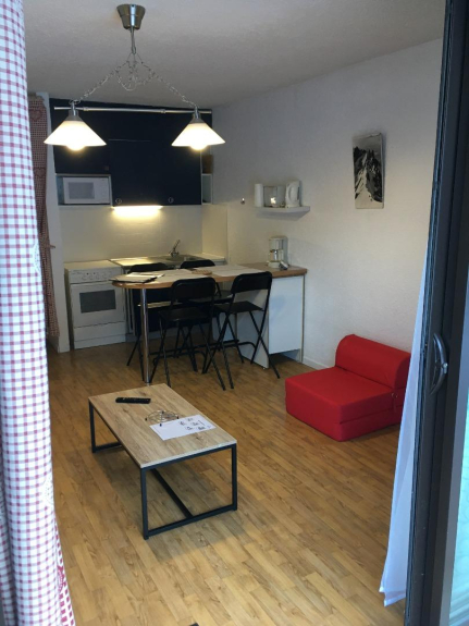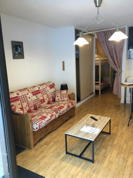 Estudio 4 personas de 27 m², reformado en 2019, residencia le Pra al pie de las pistas y vista sobre las pistas, los comercios y los remontes, en la planta baja con terraza - Orientación suroeste - litera en rincón de cabina, sofá cama 140 x 200 - baño - WC separado - cocina equipada: cocina eléctrica de gas + microondas, máquina de raclette, cafetera, hervidor, tostadora. TV, guardaesquís, alquiler de ropa de cama .