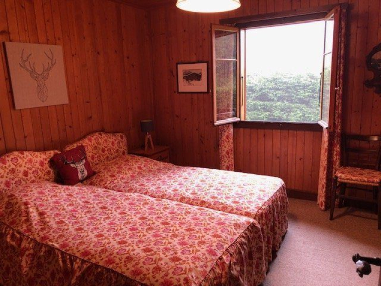 Chalet situado en una finca forestal a sólo diez minutos a pie de la estación (dos minutos en coche) y diez minutos a pie de la góndola (dos minutos en coche donde hay un gran aparcamiento).
