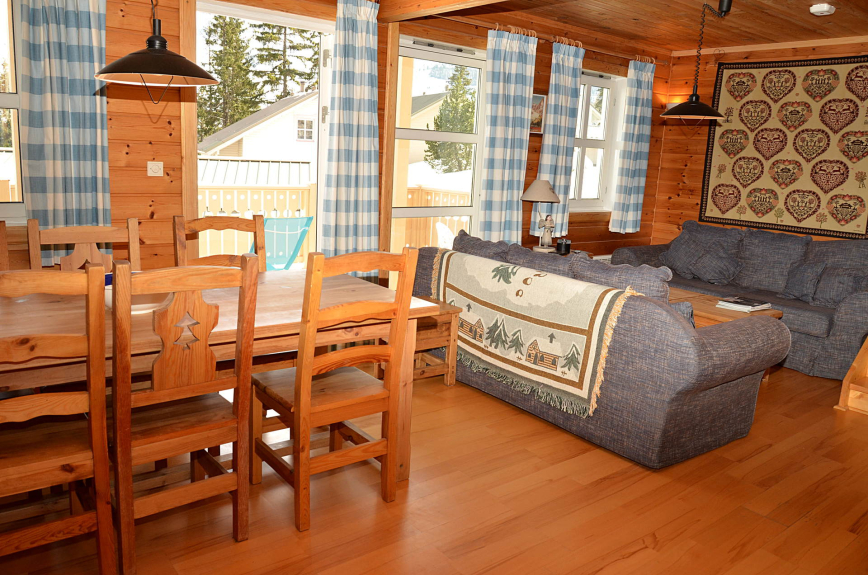 Hermosa zona de chalets escandinavos con algunas tiendas situadas en el