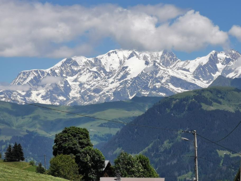 Una magnífica vista, totalmente despejada, hacia el Mont Blanc y la cordillera de Beaufortain.