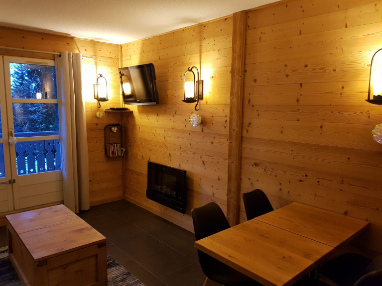 Chalet de 9 pisos situado en el Hameau de Flaine, una zona de chalets escandinavos con algunas tiendas. Pista azul cercana para llegar a los remontes y skibus gratuito para llegar al inicio de las pistas y al punto de encuentro de la escuela de esquí Flaine Forêt. Taquillas para esquís.