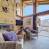 Acogedor salón con chimenea, que se abre a una terraza orientada al oeste con jacuzzi.