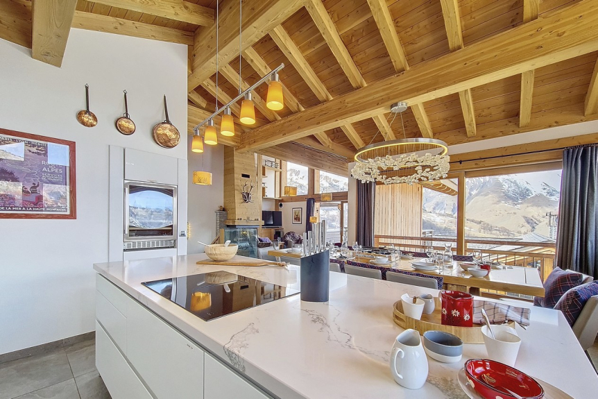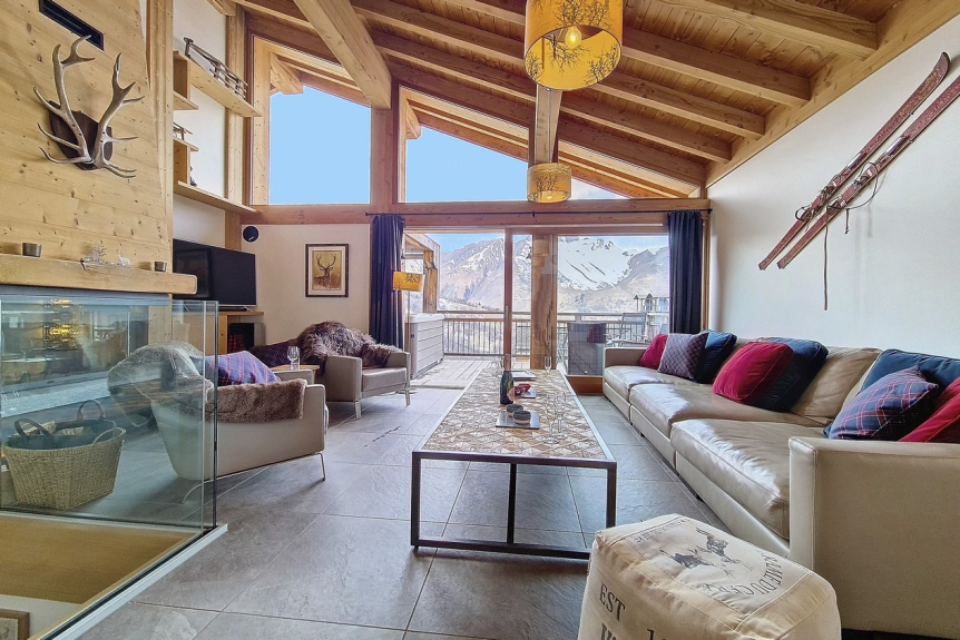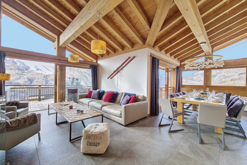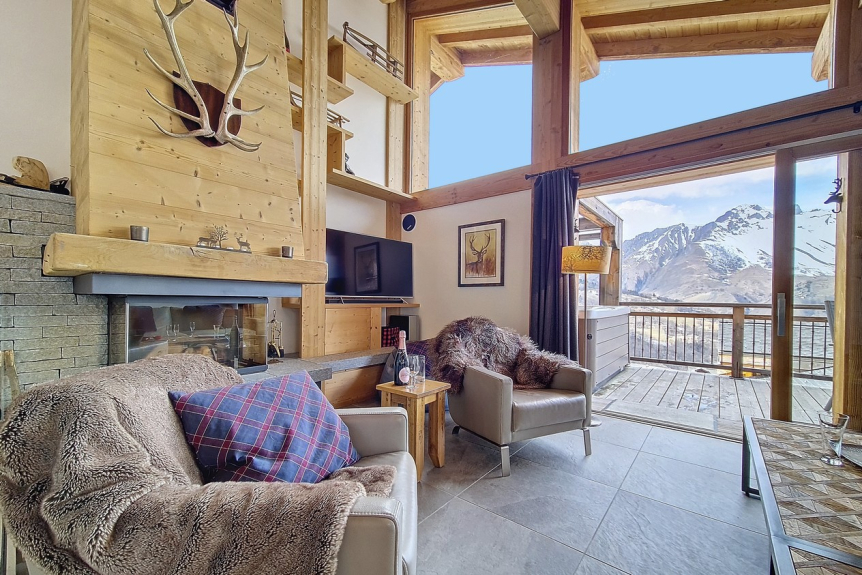 El magnífico chalet de esquí CERF D'OR está situado a un paso del telecabina de Saint-Martin de Belleville. Todo ha sido pensado para que pueda disfrutar de unas vacaciones de esquí inolvidables con sus amigos o su familia: jacuzzi exterior, gran terraza para admirar las vistas panorámicas de las cumbres, chimenea en el salón para los momentos de reunión.
