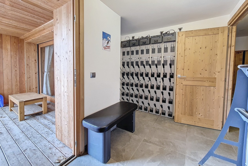 Guardaesquís con secador de botas y guantes Koralp, con acceso directo a la pista.