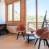 Luminoso comedor con vistas despejadas a las montañas.
