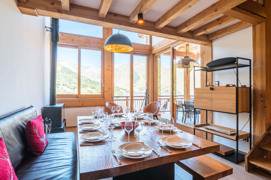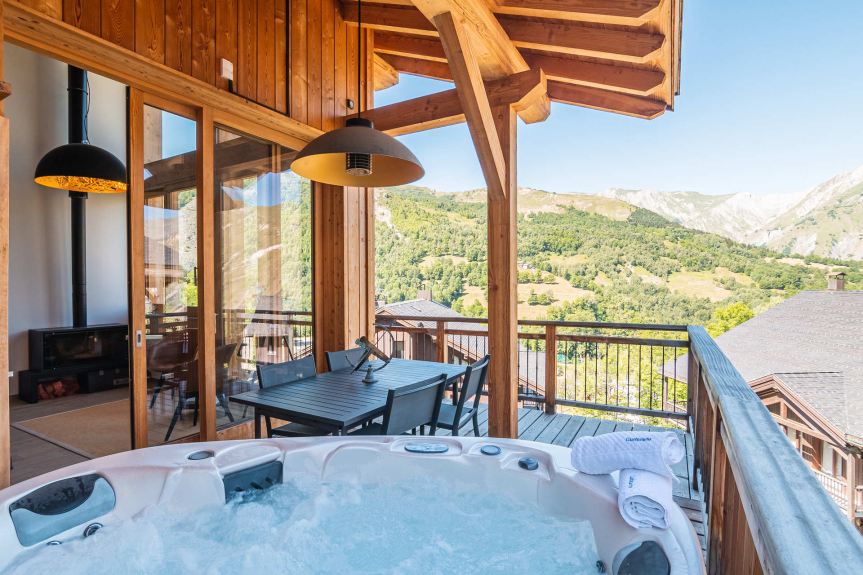 Confortable, decorado y amueblado con mucho cuidado, este chalet de 130m² en cuatro niveles puede acoger a 10 personas. Sauna y jacuzzi privados en la terraza.