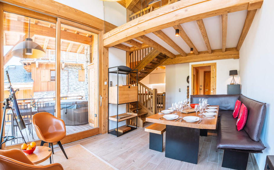 Hermoso chalet MONTE CORONA al pie de la góndola St-Martin de Belleville. Acceso directo a las pistas desde la sala de esquí Caseblanche, que se encuentra en el mismo nivel que el chalet.