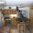 Una cocina de cóctel escandinava equipada con una barra de aperitivos y 4 sillas altas, placa de inducción, lavavajillas, nevera y congelador, horno multifunción, cafetera, tostadora, hervidor de agua... televisión y falsa chimenea eléctrica.