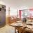 Cocina totalmente equipada: nevera, 4 placas de vitrocerámica, horno tradicional, microondas, lavavajillas, cafetera eléctrica, tostadora, hervidor de agua.