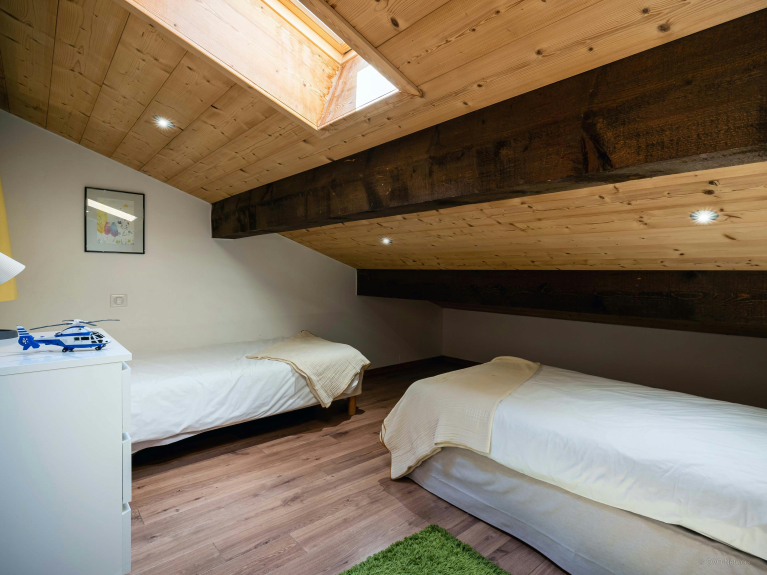 La planta superior se ha diseñado especialmente para los niños, con cuatro camas individuales en dos dormitorios, dos zonas de juego abuhardilladas y un televisor de pantalla plana.