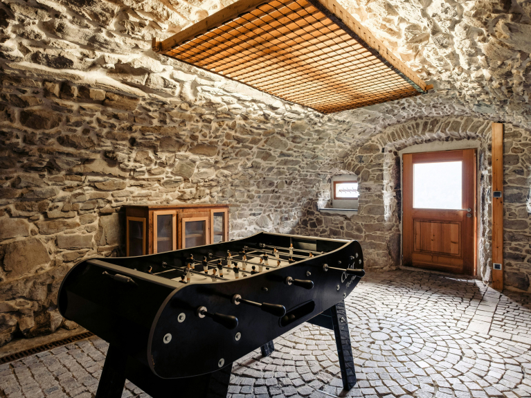 El espacio exterior es uno de los aspectos más destacados de la propiedad, con una gran terraza soleada perfecta para relajarse, cuya parte cubierta alberga un comedor para 12 personas que puede utilizarse durante todo el año, el lugar perfecto para disfrutar de una cena en la terraza mientras se ve la puesta de sol tras las montañas. La antigua bodega de quesos situada debajo del chalet se ha convertido en una sala de esquí, donde podrá guardar todo su equipo.