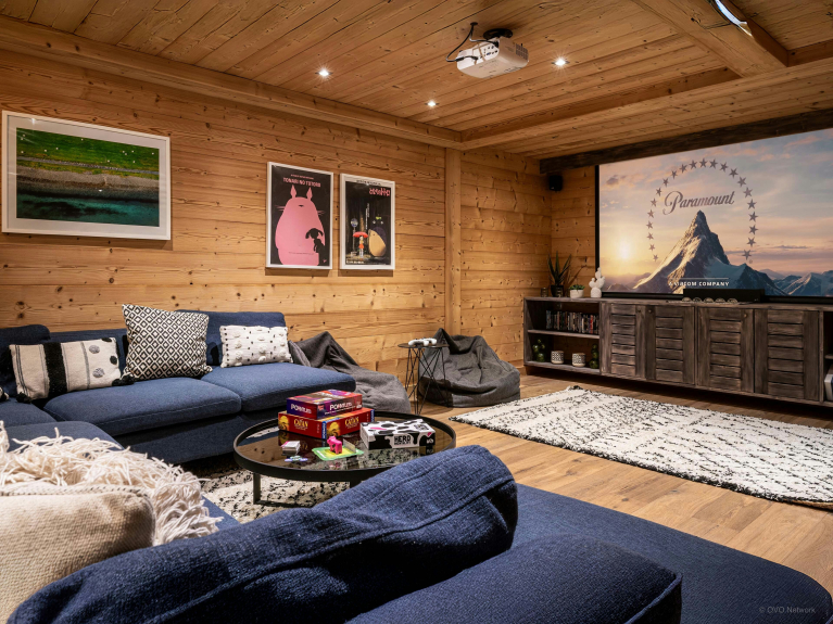 En la planta baja encontrará un cine en casa, cuarto de ducha, sala de esquí para 10 pares de esquís y espacio para colgar, garaje, lavadero y espacio de almacenamiento. Las otras 4 habitaciones (3 dobles, dos con baño y una con una cama individual extra, y 1 con 2 camas individuales), dos de las cuales tienen acceso al balcón, están en la primera planta.