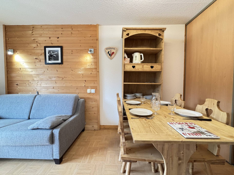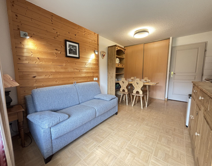 Al pie de las pistas del Espace Diamant, piso de unos 28 m², ideal para cuatro personas, piso -1, balcón WEST.