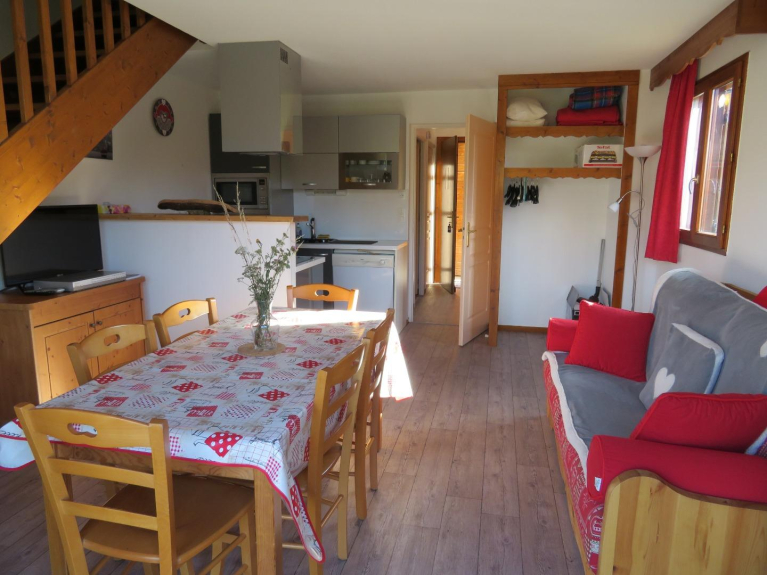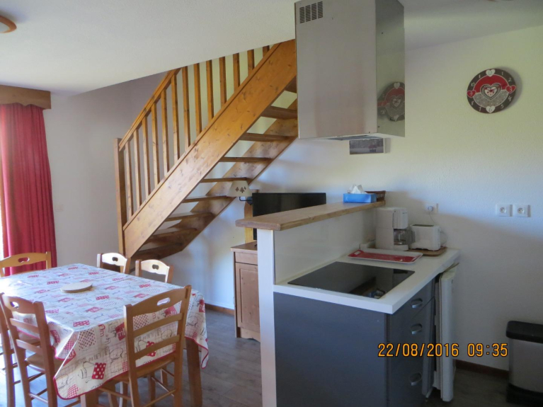 IMPORTANTE / TARIFAS REDUCIDAS EN LAS SEMANAS RESTANTES DE ALQUILER : El chalet está situado en una estación de pueblo anexa al dominio de Superdevoluy (100 KM de pistas) . El complejo está a una altitud de 1.500 metros. El chalet ha sido totalmente renovado y comprende en la planta baja: Un rincón de montaña con dos literas en el vestíbulo con un cuarto de ducha y un aseo separado. Hay una cocina totalmente equipada que sale de la sala principal con un sofá (rapido) y una terraza con vistas a las montañas. En la primera planta: dos dormitorios con dos camas cada uno que se pueden juntar y un baño central con WC, uno de los dormitorios con un balcón en la parte de la montaña.