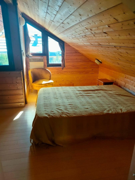 El alquiler propuesto se refiere a la planta baja, la primera y la segunda planta del chalet. Dispone de 3 habitaciones con camas dobles y 3 habitaciones con camas individuales: es ideal para 10 a 12 personas. Las dos partes (planta baja por un lado, 1ª y 2ª planta por otro) pueden ser independientes.