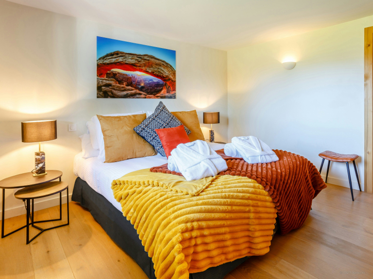 El autobús de los esquiadores para a 40 metros del chalet. Así que si no quieres conducir, puedes aparcar tu coche en el garaje y prescindir de él durante tu estancia. Disfrute de las fabulosas vistas del Monte Chery y de las montañas desde la gran terraza solárium. Relájate en el jacuzzi o en la sauna al final de un largo día en las pistas.
