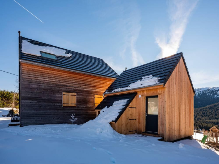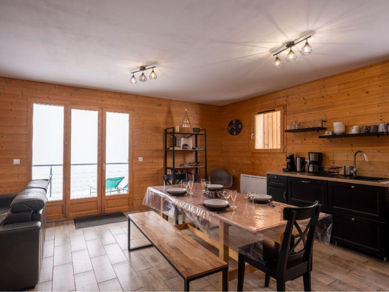 Compuesto por una gran entrada para guardar su equipo, una sala de estar de 40 m² con cocina equipada, 3 dormitorios, 2 aseos y un cuarto de ducha. Acompañado de una zona de bienestar de 20m² con jacuzzi, sauna y hammam.