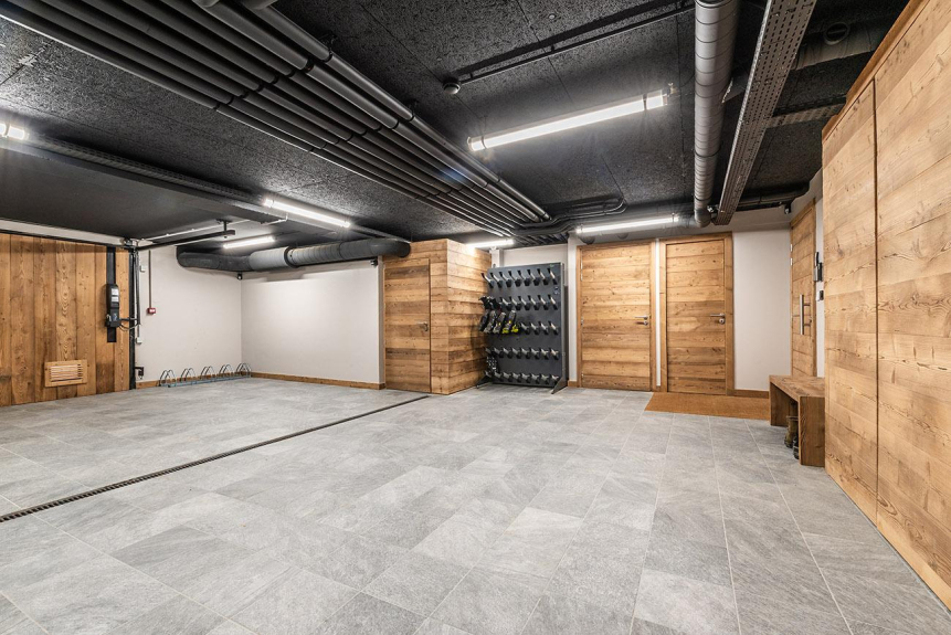 . Entrada al garaje con secador de zapatos/guantes + armario para esquís.