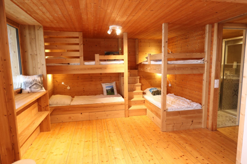 Apodado el "chalet tranquilo", es efectivamente muy tranquilo, debajo de una aldea de varios chalets y rodeado de pastos, a 1400 metros de altitud.