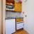 Cocina integrada con 2 placas de cocción, microondas, nevera, lavavajillas, tostadora, hervidor y cafetera.