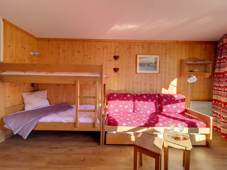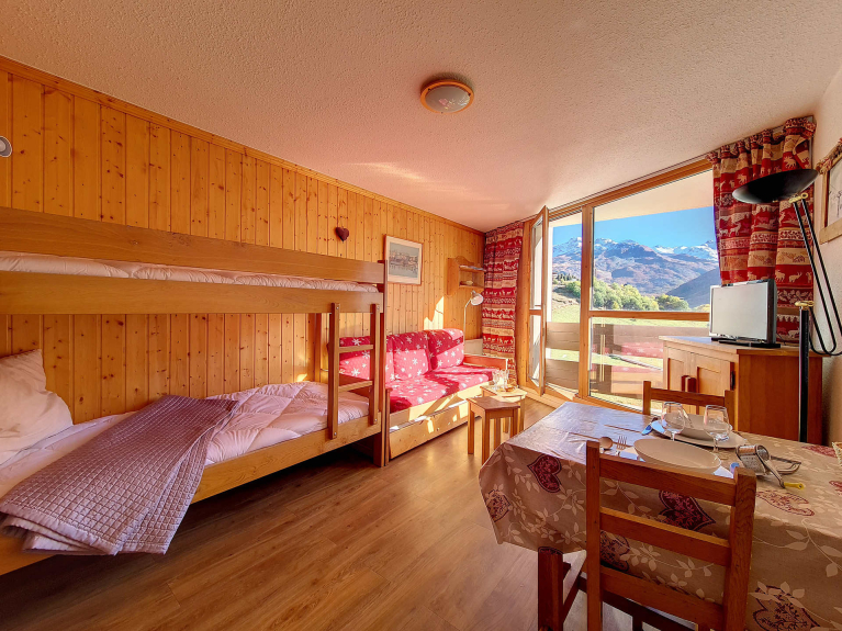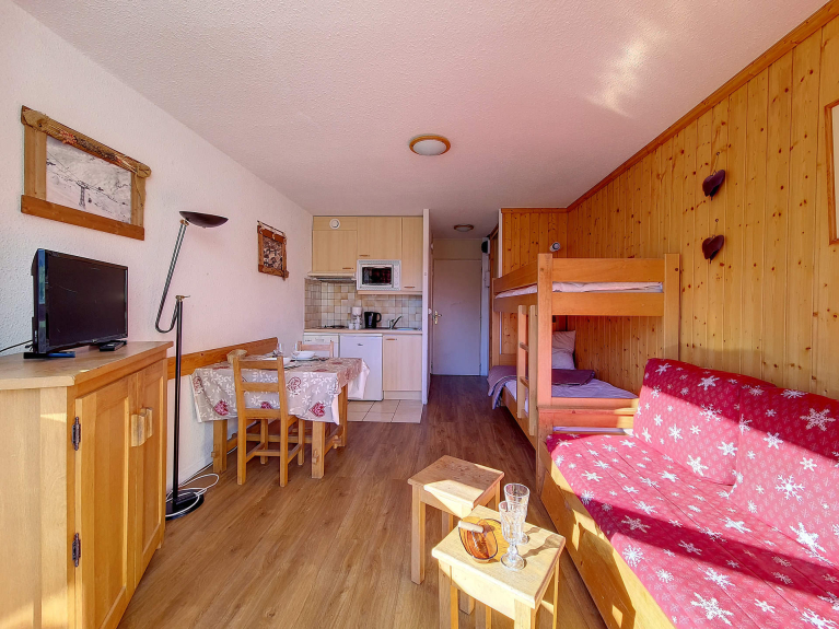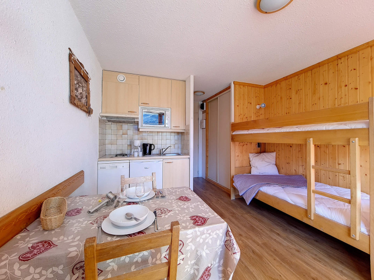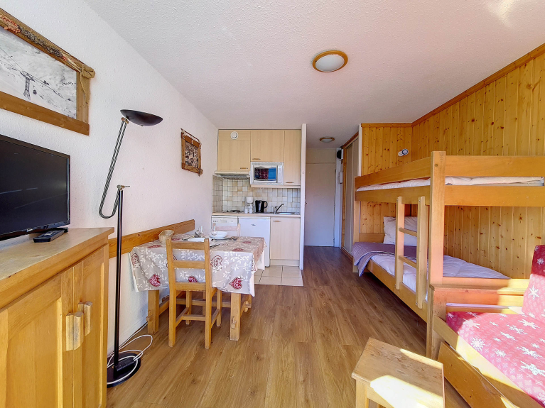 Estudio de 20 m² para 3 personas. Situado en la 7ª planta, tiene un balcón orientado al sur. Entrada 1.
