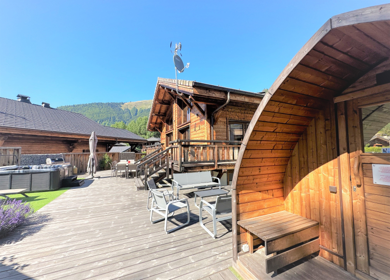 Alojándose en nuestro Chalet Paradis Blanc Morzine, disfrutará de cerca de 300m² con 6 habitaciones dobles con baño (con baño privado) y un dormitorio de 6 camas, así como de un jardín totalmente equipado (muebles de jardín instalados sólo en verano) con Clairazur Swim Spa y Timber'In Sauna.
