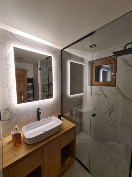 Construido en varios niveles, este chalet excepcional dispone de 3 habitaciones dobles, incluida una suite principal, 3 cuartos de baño y un dormitorio con 4 camas individuales.