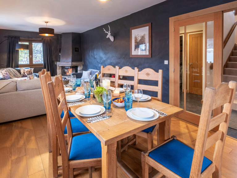 El gran jardín plano es una verdadera ventaja en esta parte de los Alpes. En verano, los niños tendrán el espacio perfecto para correr y jugar, mientras que en invierno, el lugar es ideal para las peleas de bolas de nieve. Hay una terraza amueblada. En verano se puede comer aquí.