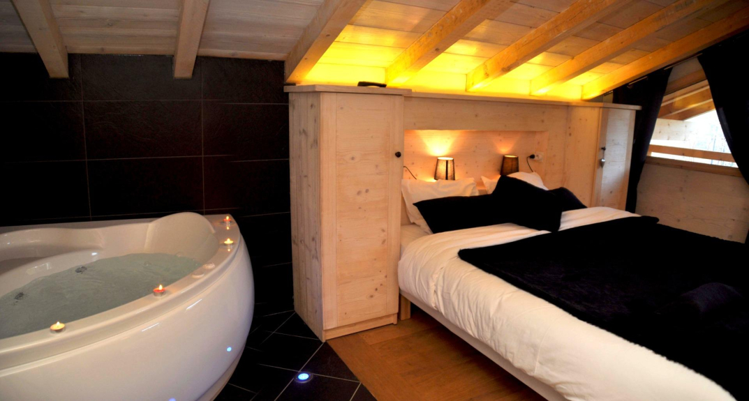 Chalet Zermatt es un nuevo chalet de lujo. Este chalet de 300 m², situado directamente debajo de las pistas, con entrada y salida de esquí, dispone de 8 habitaciones con baño, algunas de ellas con bañera de hidromasaje (habitaciones principales), una piscina climatizada interior y exterior con rincón de hidromasaje y zona de juegos para niños, un spa profesional de 6 plazas (37°), una sauna con ducha a ras de suelo, un gran jacuzzi exterior... Está diseñado para una capacidad de 16/22 personas. El chalé de Zermatt está situado en el borde de un gran claro rodeado de abetos centenarios. No hay vista opuesta sobre la piscina y la terraza que se beneficia de un sol notable.