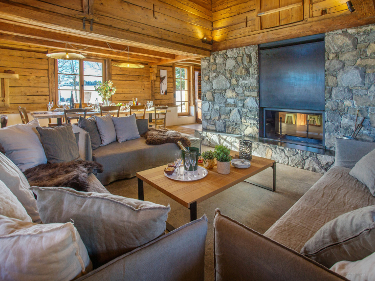 La encantadora cocina totalmente equipada cuenta con una mesa alta, ideal para un desayuno rápido o un tentempié. Podréis disfrutar de vuestras comidas juntos en la gran mesa. Después de cenar, puedes relajarte en los tres sofás y contemplar el crepitar del fuego en la chimenea.