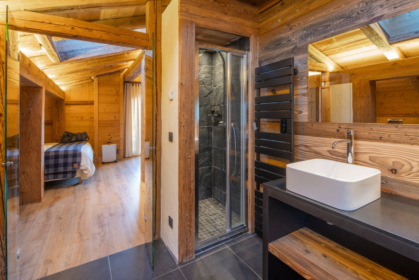 Junto a la entrada principal del chalet, una sala de esquí le ofrece la posibilidad de guardar todo su material de esquí y prepararse sin molestias para las salidas a la nieve.