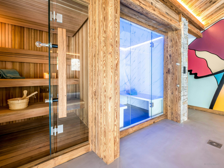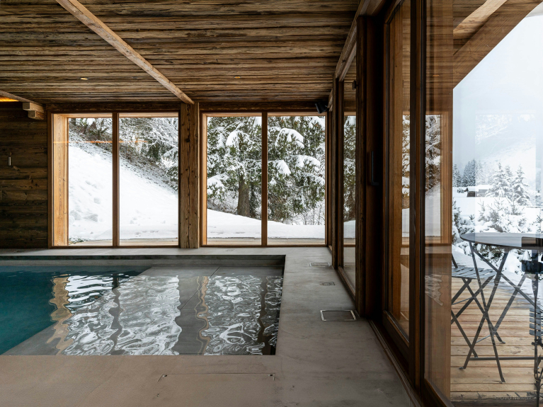 Lo más destacado de este magnífico alojamiento es sin duda su zona de bienestar. La piscina cubierta es lo suficientemente grande para nadar, pero también invita a la fiesta, gracias a un bar con cocina americana que se abre a la terraza. También hay un hammam y una sauna, donde podrá relajarse tras un ajetreado día en la montaña.