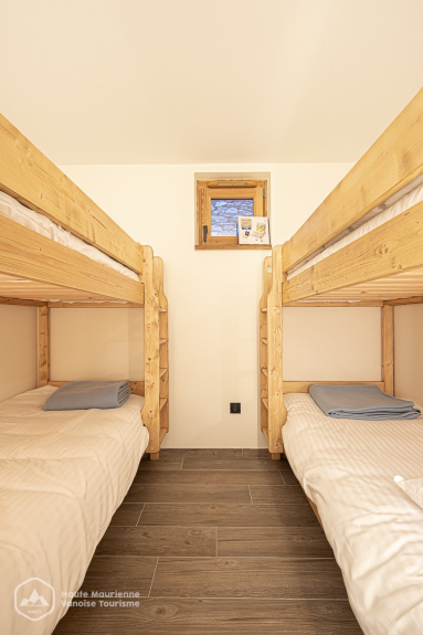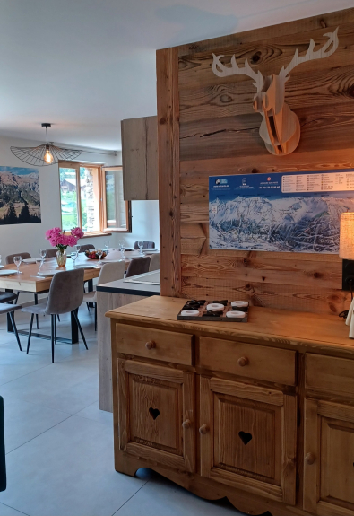 Piso para 12 personas en un auténtico chalet saboyano en la aldea de Les Champs, entre Lanslebourg y Lanslevillard. Terraza orientada al sur/este y balcón orientado al sur con vistas panorámicas.