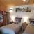 El salón / piso de madera está equipado con 3 sofás de cuero envejecido, pufs y alfombras de lana, mesa de centro, lámparas de ambiente, TV de 150 cm, sistema HIFI, reproductor de DVD Bluray, TV box y WIFI. Las ventanas francesas orientadas al sur dan acceso a un balcón terraza cubierto con mesa y sillas de jardín.