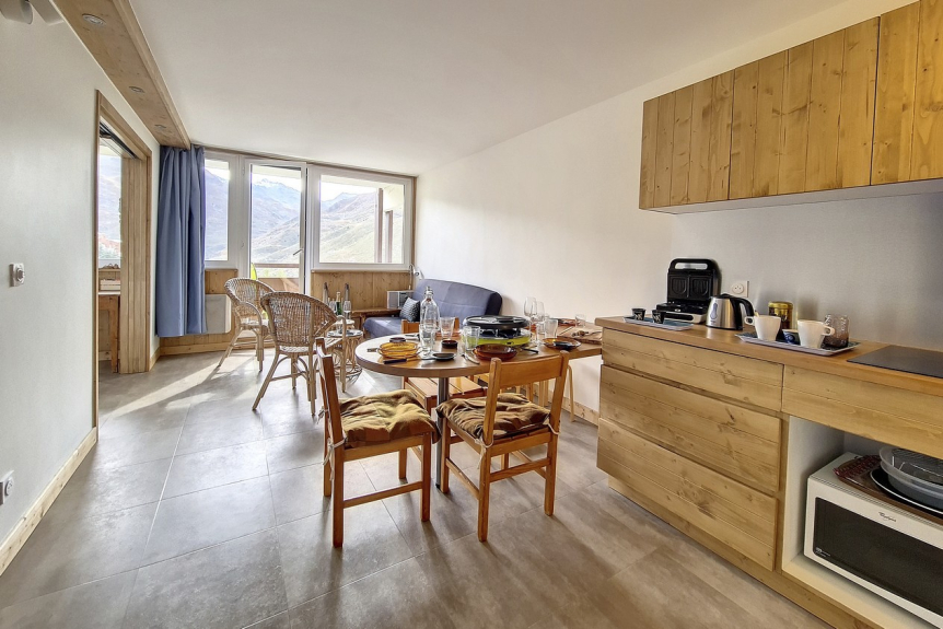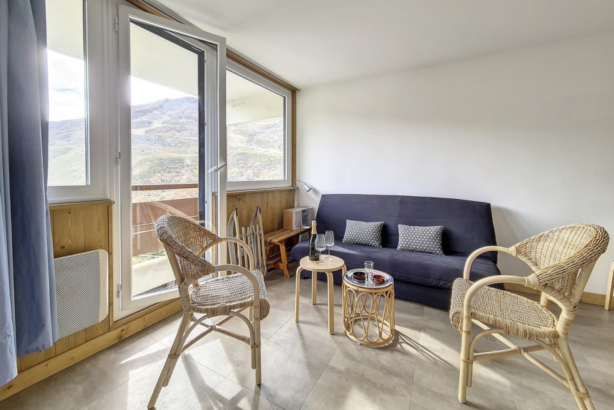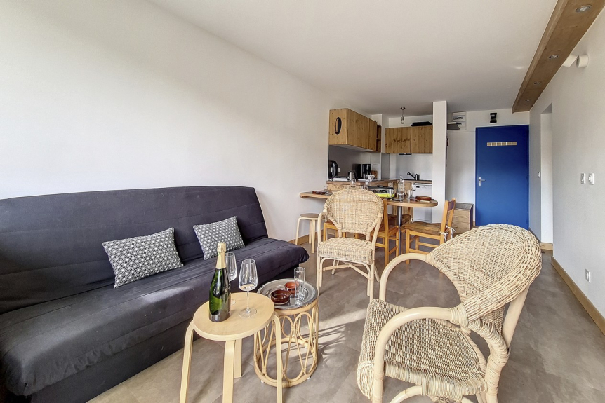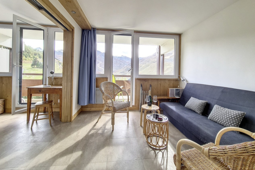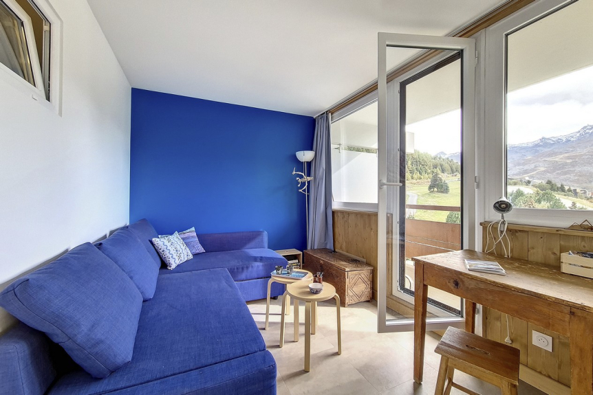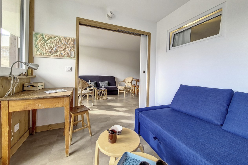 Piso de 2 habitaciones de 36 m2 con cabina renovado en 2020 para 6 personas. Dispone de balcón orientado al sur.
