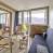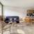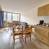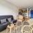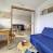 Cocina equipada con 2 placas eléctricas, frigorífico, horno microondas combinado, lavavajillas, hervidor, tostadora y cafetera.