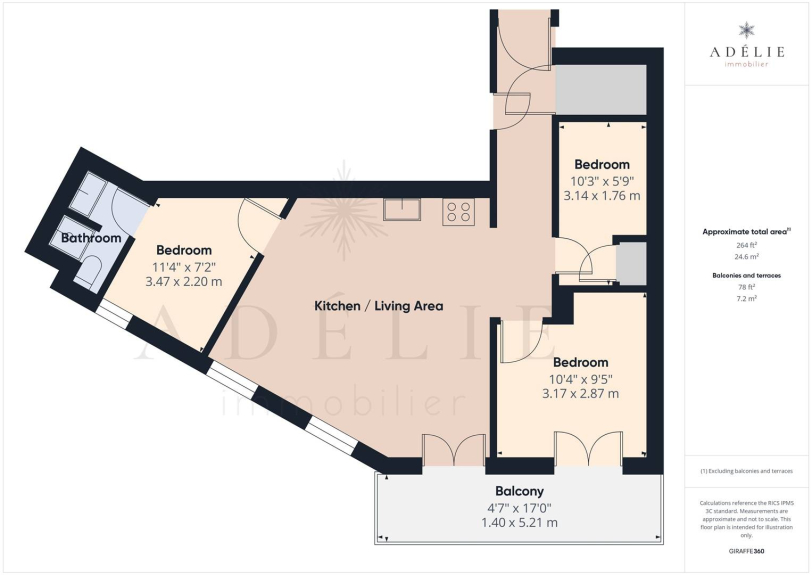 VLZ25: Apartamento de 4 habitaciones para 8 personas clasificado 2* en el 3er piso con ascensor.